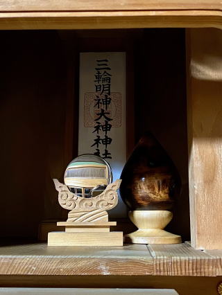 奈良・三輪山に鎮まる大物主命。その根源にある「母神の愛」を、五百年の時を刻んだ御神木に宿しました。魂の故郷を想い起こさせる、静かな祈りのかたちです。