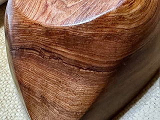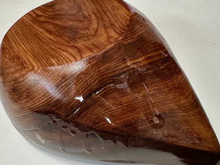 この丼は、今も私たちが使っています。18年前にご依頼頂いた時に、もともと木にヒヒが入っていたものを もったいないので自家用にしたものです。初めからひびが入っていても コーティングがしっかりされているので漏れるようなことはありません。また、右の画像のように 落として欠けても、かけたかけらをガラスウッドコートでくっ付ければ漏れることもなく使えます。 木だけではなく陶器などもかけたりひびが入ったりしたものも修理しています。 |